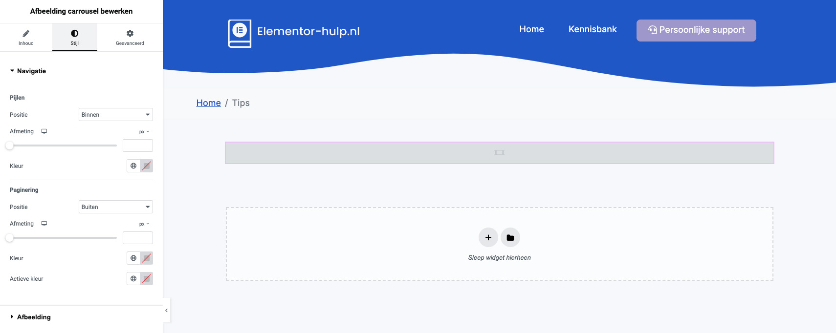 Nu je de Afbeelding carrousel-widget hebt toegevoegd, kun je beginnen met het aanpassen van de diavoorstelling: